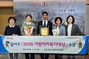 시민행정신문 강갑수 기자 | 대구 달서구가 한국사회복지사협회가 주관하는‘2026 지방자치복지대상’에서 기초자치단체 부문 대상을 수상하며 복지 선도도시로서의 위상을 다시 한번 입증했다. 이번 시상은 지난 30일 서울 국회박물관에서 열린‘제20회 사회복지사의 날’ 기념식에서 진행됐으며, 사회복지사 처우개선과 지역복지 발전에 기여한 지방자치단체의 정책 성과를 종합적으로 평가해 수여됐다. 달서구는 사회복지 종사자 처우개선을 위한 조례를 선제적으로 제정하고, 세 차례의 실태조사를 실시하는 등 데이터 기반 정책을 추진해 온 점에서 높은 평가를 받았다. 또한 2026년 전체 예산 1조 1,958억 원 중 73.3%에 해당하는 8,678억 원을 사회복지 분야에 편성하며 복지 사각지대 해소와 종사자 지원에 지속적으로 투자해 왔다. 이와 함께 보건복지부 인건비 가이드라인 준수, 상해보험료 및 보수교육비 지원, 장기근속 휴가제 도입 등 근무환경 개선 정책을 추진해 현장 만족도를 높였다. 아울러 통합돌봄 전담부서 신설, 노인종합복지관 확충, 주거복지센터 및 아이꿈센터 운영 등 조직과 인프라를 확대해 서비스