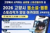 시민행정신문 이세훈 기자 | 고양산업진흥원이 웹콘텐츠 산업을 이끌어갈 스토리 전문 인재 발굴을 위한 ‘2026 고양시 웹소설·웹툰 스토리작가 양성 아카데미’ 교육생을 모집한다. 이번 교육과정은 진흥원과 스토리 콘텐츠 분야 전문가들로 구성된 한국만화스토리협회와 협업해, 고양시 작가 지망생들의 데뷔를 목표로 이도경, 김양수, 송향희 등 현역 작가들이 다양한 창작 노하우를 공유할 예정이다. 스토리 작가 데뷔에 관심 있는 고양시민, 고양시 소재 대학교 재학생·졸업생을 대상으로 하며, 오는 3월 19일까지 이메일로 신청하면 된다. 교육은 4월 10일부터 매주 금요일 총 10회에 걸쳐 진행되며, 자세한 내용은 포스터 내 QR코드 또는 진흥원 누리집에서 확인할 수 있다. 진흥원은 웹툰·웹소설 등 부가가치가 큰 웹콘텐츠 IP를 발굴하고, 우수한 창작 인재 양성을 위한 교육 사업을 추진하고 있다. 특히 ‘IP융복합 콘텐츠 클러스터’조성을 통해 고양시 특화 웹콘텐츠 산업을 지속적으로 육성해 나갈 계획이다.