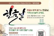 시민행정신문 강갑수 기자 | 대전시는 579돌 한글날을 맞아 기념 문화행사 ‘함께 한글’을 10월 9일(목) 오후 1시부터 대전시청 남문광장(시민 잔디광장)에서 개최한다. 이번 행사는 대전시가 주최하고 한남대학교 국어문화원이 주관하며, 한글의 창의성과 과학성을 널리 알리고 우리말과 글의 소중함을 시민과 함께 나누기 위해 기획됐다. 행사에서는 ▲타악공연(림스타악기앙상블) ▲비누방울 공연(MC 선호) ▲한글날 레크리에이션 등 문화공연과 함께, 한글 열쇠고리·초롱등 만들기 등 10여 종의 만들기 체험 교실, 전시회, 전통놀이, ‘줍깅’(쓰레기 줍기+조깅) 등 참여형 프로그램이 다채롭게 진행된다. 특히 만들기 체험 교실은 사전 예약과 현장 접수를 병행해 운영되며, 사전 예약은 9월 20일부터 10월 4일까지 ‘한남대학교 국어문화원’ 누리집 알림창 또는 단축 주소를 통해 신청할 수 있다. 고현덕 대전시 교육정책전략국장은 “이번 행사는 시민들과 함께 한글의 가치를 되새기며, 대전시민 모두 함께 즐길 수 있는 뜻깊은 자리가 되길 바란다”라고 말했다. 자세한 사항은 한남대학교 누리집 공지 사항을 참고