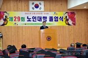 시민행정신문 강갑수 기자 | 김제시는 대한노인회 김제시지회가 지난 13일, 지회 2층 강당에서 제29회 노인대학 졸업식을 성황리에 개최했다고 밝혔다. 이날 행사에는 노인대학생 190여 명을 비롯해 노인회 임원, 내외빈 등 약 230명이 참석해 졸업생들의 새로운 출발을 함께 축하했다. 행사는 ▲노인강령 낭독, ▲학사보고 및 졸업증 수여, ▲시상식 순으로 진행됐으며, 정성주 김제시장과 서백현 김제시의회 의장 등 주요 내빈이 참석해 졸업생들에게 축하와 격려의 뜻을 전했다. 특히, 올해 졸업생들은 수개월 동안 다양한 교양·건강·문화 교육을 통해 평생학습의 가치를 실천해 왔으며, 지역사회 참여와 공동체 활동에도 적극적으로 동참해 의미를 더했다. 정 시장은 “오늘의 졸업은 끝이 아니라 새로운 시작”이라며 “오랜 기간 배움을 이어온 어르신들의 열정은 우리 지역사회의 귀감이 되고 있다”고 전했다. 이어 “꾸준한 학습을 통해 얻은 지혜와 경험이 앞으로의 삶뿐 아니라 지역 공동체에도 큰 힘이 될 것”이라며 “김제시는 어르신들이 더 건강하고 활기찬 노후를 보내실 수 있도록 어르신들을 위한 다양한 건강·여가