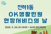 시민행정신문 강갑수 기자 | 울산 동구는 오는 9월 24일 오후 2시부터 4시까지 바드래공원에서 ‘전하1동 OK생활민원 현장서비스의 날’ 행사를 개최한다. 이번 행사는 올해 다섯 번째로 열리는 OK생활민원 현장서비스의 날 행사로 주민들이 일상생활에서 느끼는 불편을 해소하고 삶의 질 향상을 위한 다양한 분야로 구성했으며, 이번 행사 운영을 위해 자원봉사자, 민간 기술자, 관계 공무원 등 70여 명이 참여한다. 서비스 분야는 총 4개로 주민 편익(칼갈이, 분갈이, 자전거 수리, 안경 및 귀금속 세척), 주민 체험(외국인 주민과 함께하는 문화 체험), 건강관리(심혈관질환, 비만 예방, 치매 예방), 동 특화사업(우리를 잇는 따뜻한 손길, 함께 만드는 전하1동) 등이 있다. 유료 체험 부스로는 반려 식물 키우기 체험이 마련되는데, 1인당 1개만 가능하며 빈 화분을 지참해야 하고 체험비는 현금으로 받는다. 2025년 OK생활민원 현장서비스의 날 전체 일정 및 전하1동 행사 정보는 울산 동구청 홈페이지 알림사항에서 확인 할 수 있다.