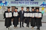 시민행정신문 강갑수 기자 | 강진군이 지난 11일 보건소 3층 대회의실에서 수강생 30명이 참석한 가운데 ‘2025년 군민자치대학 제3기 건강대학 수료식’을 개최했다. 이날 수료식은 그동안의 활동을 되돌아보는 영상 상영을 시작으로, 보건소장 인사말씀, 수강생 소감 발표, 우수 수강생 시상, 수료증 수여, 기념촬영 순으로 진행됐다. 우수 수강생으로는 3명이 선발됐으며 1년간 의미있는 변화를 이룬 수강생에게 건강체질 개선상, 근육성장상, 건강변화상의 상을 수여했다. 건강대학은 군민의 자가건강관리 능력 향상과 건강생활 실천 문화 확산을 목표로 2023년 처음 개설돼 올해로 3기째를 맞이했다. 2025년 교육은 지난 3월부터 11월까지 총 20회에 걸쳐 ▲파크골프 ▲라인댄스 ▲응급처치교육 ▲영양교육 등 이론과 실습을 병행한 체험형 프로그램으로 운영됐다. 한준호 강진군보건소장은 “지난 2학기 동안 열정적으로 참여해주신 모든 수강생 여러분께 감사드린다”며 “건강대학에서 배운 내용을 생활 속에서 꾸준히 실천해 가족과 이웃의 건강까지 지켜주는 건강리더로 활약해주시길 바란다”고 말했다. 수