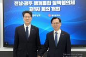 시민행정신문 강갑수 기자 | 광주광역시와 전라남도는 권한대행을 중심으로 핵심 국장급 실무진으로 이뤄진 광주·전남 정책협의체를 지난 24일 발족하고, 제1차 회의를 가졌다. 정책협의체는 양 시도 권한대행과 기획조정실장, 자치행정국장, 행정통합실무준비단장 등 총 8명으로 구성된 실무 조정·결정 기구로, 행정통합의 기본 방향 설정, 고위급 소통, 분야별 통합현안의 신속한 의사결정이 필요하다는 공감대 아래 설치키로 사전 합의, 출범하게 됐다. 양 시도는 정책협의체를 통해 부서간 이견 조율이 필요한 통합과제에 대한 공식 협의기구 역할을 수행하게 된다. 또, 실질적인 행정통합 추진을 위한 정부 재정 지원책 마련과 관련 특별법 등 제도 개선 사안에도 공동 대처하기로 뜻을 모았다. 이날 발족과 동시에 광주전남공동혁신도시(나주) 복합혁신센터에서 열린 제1차 회의에서는 협의체 운영안, 주요 통합과제 및 공동 추진안을 논의했다. 정책협의체 운영은 정례 회의와 수시 회의를 병행하되 긴급한 현안에 대해서는 시·공간의 제약 없이 격식 없는 논의를 거쳐 신속한 의사결정을 지원할 방침이다. 양 시도는 특히 조직·인