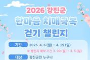 시민행정신문 강갑수 기자 | 강진군 보건소(치매안심센터)가 치매예방에 대한 관심을 높이고 건강 생활 실천을 독려하기 위해 오는 4월 6일부터 19일까지 14일간 '한마음 치매극복 걷기챌린지'를 운영한다. 이번 행사는 군민이 한마음으로 치매 극복을 기원하고 치매에 대한 부정적인 인식을 개선해 치매 친화적 지역사회 환경 조성하기 위해 마련됐다. 챌린지는 모바일 걷기 플랫폼인 ‘워크온’ 앱을 통해 진행되며 강진군민이라면 누구나 참여할 수 있다. 참여방법은 스마트폰 앱스토어에 '워크온' 설치 및 회원가입 후 ‘강진군 치매 극복 걷기’ 챌린지 참여하기 버튼을 누른 후 행사 기간 내에 자유롭게 걷기를 실천하면 된다. 이번 챌린지 목표는 14일 동안 98,000보 달성하는 것이다. 단 무리한 운동을 방지하기 위해 걸음 수는 1일 최대 8,000보까지만 인정된다. 목표 걸음 수를 달성한 군민 중 선착순 150명에게는 소정의 기념품이 증정된다. 대상자는 4월 21일부터 4월 30일까지 강진군 치매안심센터를 직접 방문하여 기념품을 수령하면 된다. 강진군 치매안심센터 관계자는 "