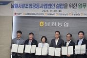 시민행정신문 강갑수 기자 | 남원시는 이번 9월 30일 남원농협에서 농협쌀조합공동사업법인 설립을 위해 남원시(남원시농업기술센터소장), 농협중앙회남원시지부, 남원농협, 춘향골농협, 운봉농협, 지리산농협과 업무협약식을 개최했다. 이번 협약식의 목적은 지역 농업의 경쟁력을 높이고 쌀 산업 활성화를 위해 관내 4개농협이 협력하여 농협쌀조합공동사업법인을 설립하기 위함이다. 협약식에 참석한 남원시농업기술센터소장과 농협 조합장들은 “이번 협약을 통해 지역 농업인들의 소득 증대와 쌀 산업의 지속 가능한 발전을 기대한다”며 “앞으로도 상호 협력하여 남원시 농업의 경쟁력을 높이는 데 최선을 다할 것”이라고 밝혔다. 향후 농협쌀조합공동사업법인 설립을 위한 발기인대회 및 창립 총회를 개최할 예정이며, 내년 초까지 농식품부의 법인 승인을 목표로 하고 있다.