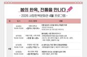 시민행정신문 강갑수 기자 | 광주광역시 서구가 도심 속 한옥에서 봄의 정취와 전통문화를 한자리에서 즐길 수 있는 특별한 경험을 선사한다. 서구는 4월 한 달간 서창한옥문화관에서 ‘봄의 한옥, 전통을 만나다’를 주제로 전통문화 프로그램을 운영한다. 이번 프로그램은 무형문화재 전수자와 함께하는 전통 음식 체험과 한옥 피크닉, 전통공예 체험 등으로 구성했다. 4일에는 전통 장을 직접 담가보는 ‘할머니 레시피’ 프로그램을 진행한다. 광주광역시 무형문화재 제17호 남도의례음식 이수자가 참여해 전통 식문화의 가치와 함께 우리 고유의 맛과 지혜를 전한다. 11일과 25일에는 서창동의 문화·생태 자원을 연계한 계절별 특화 프로그램 ‘마을 이음, 사계 여정-봄’을 운영한다. 참가자들은 만귀정과 나눔누리정원 등 서창동 일대 명소를 해설사와 함께 탐방하고 봄꽃 피크닉과 버스킹 공연, 체험 프로그램을 즐길 수 있다. 이외에도 11일과 18일 다육이 심기와 나무구슬 팔찌 만들기 등 체험을 무료로 제공하는 ‘주말한옥공방’, 14일 평매듭 팔찌 만들기와 복조리 다육이 심기 등을 체험하는 전통문화교실 ‘소문난 학당’, 18일