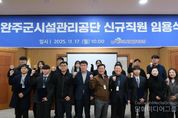 시민행정신문 강갑수 기자 | 완주군시설관리공단이 17일, 신규직원 임용식을 갖고 2026년 위탁 사업대비를 위한 업무인수인계 절차에 본격 돌입했다. 공단은 2026년 1월 예정된 체육시설(수영장), 고산북부권 공영마을버스 운영 위탁 전환에 대비해 현장 인수인계와 사전 운영준비를 위한 일반직 행정분야 직원 8명을 우선 임용했다. 완주군시설관리공단 2층에서 열린 임용식은 ▲임용장 수여 ▲청렴 서약서 낭독 ▲ESG 경영선포 ▲공단 주요 사업안내 순으로 식이 진행됐다. 신규직원들이 조직의 역할과 책임을 이해하고 함께 성장해 나갈 수 있도록 공단의 중점 추진 방향을 공유하는 시간이 함께 마련됐다. 임용식 이후 청렴, 친절교육과 4대폭력 예방교육이 이어졌으며 특히 신규직원이 공공기관 종사자로서 갖춰야 할 기본 직무윤리와 고객응대역량을 강화하는데 중점을 뒀다. 완주군시설관리공단은 지난 2024년 10월, 3개팀(경영지원팀, 교통환경팀, 복지문화팀)으로 설립되어 출범한 이후, 2025년 1월 완주군으로부터 공영마을버스, 공영주차장, 공설장사시설, 고산자연휴양림, 종량제봉투 판매 등 총 5개 사업을 위