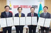 시민행정신문 강갑수 기자 | 대전시는 7일 대전시청 10층 응접실에서 KAIST, 충남대학교, (사)바이오헬스케어협회(회장 맹필재)와 함께 의과학 융복합 인재양성 및 공동연구를 위한 업무협약을 체결했다. 이번 협약은 대전이 보유한 풍부한 바이오․의과학 연구 인프라와 우수한 교육․산학 연계 역량을 바탕으로 임상과 기초연구를 융합한 의사과학자(Physician Scientist) 및 의과학 분야 고급 연구인력 양성체계 구축을 위해 추진됐다. 협약에 따라 4개 기관은 ▲의사과학자 및 의과학 전문인력 공동 양성 ▲공동 연구 및 기술개발 협력 ▲교육·연구 인프라 및 정보 공유, ▲현장 실습 및 임상연계 교육 ▲지역 바이오기업 협력사업 등을 본격적으로 추진할 예정이다. 시는 본 협약을 통해, KAIST의 첨단 연구 역량, 충남대의 의학 및 임상 기반, 바이오헬스케어협회의 산업계 네트워크, 대전시의 행정 지원을 결합하여, 교육-연구-산업-정책이 유기적으로 연결되는 지역 혁신 모델 구현을 꾀하고 있다. 이장우 대전시장은 “대전은 과학기술과 의료, 산업이 조화를 이루는 대한민국 대표 바이오도시로, 이번 협약을 통해