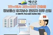 시민행정신문 강갑수 기자 | 예산군은 대형 건축물의 정보통신설비 장애를 예방하고 안정적인 운영을 도모하기 위해 ‘정보통신설비 유지보수 관리자 선임제’를 시행하고 대상 확대에 나선다. 이번 제도는 공동주택과 ‘학교시설사업 촉진법’ 적용 학교시설을 제외한 연면적 5000㎡ 이상 대형 건축물을 대상으로 추진되며, 군은 제도의 원활한 정착을 위해 개별 우편 안내와 군 홈페이지를 통해 지속적인 홍보를 실시하고 있다. 제도는 단계적으로 확대 적용되며, 지난해 7월 19일부터 연면적 3만㎡ 이상 건축물에 우선 시행됐다. 이어 올해 7월 19일부터는 1만㎡ 이상, 2027년 7월 19일부터는 5000㎡ 이상 건축물까지 확대될 예정이다. 건축물 관리주체는 제도 적용 시점 이후 일정 기간 내 정보통신설비 유지보수 관리자를 선임하고 선임 사실을 군청 자치행정과 정보통신팀에 신고해야 한다. 선임된 관리자는 건축물 내 정보통신설비 상태를 정기적으로 점검하고 반기별 유지보수 점검과 연 1회 성능 점검을 실시해 설비의 안정성을 확보해야 하며, 건물 규모에 적합한 정보통신기술자 자격을 갖추고 전문 교육을 이수해야