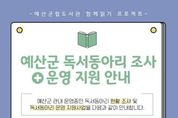시민행정신문 강갑수 기자 | 예산군 공공도서관은 지역 내 독서동아리 활동을 체계적으로 지원하고 독서공동체 기반을 넓히기 위해 ‘2026 독서동아리 운영 지원사업’을 추진한다. 군은 오는 4월 1일부터 30일까지 관내 독서동아리를 대상으로 현황조사와 지원사업 신청을 동시에 접수하며, 이를 통해 지역 내 동아리 활동 실태를 파악할 계획이다. 원활한 실태 파악을 위해 현황조사에 참여하는 독서동아리에는 2026년 동안 예산군립도서관 공간을 3회 무료로 대여할 수 있는 혜택을 제공한다. 지원사업은 관내에서 활동 중인 성인 5인 이상으로 구성된 독서동아리 가운데 3개 동아리를 선정해 5월부터 11월까지 운영하며, 선정된 동아리에는 군립도서관 다목적실·문화강좌실 등 활동 공간 무료 대관을 비롯해 동아리 활동 도서 구입 지원, 독서 멘토링, 작가와의 만남, 문학기행 등 다양한 독서문화 프로그램을 지원한다. 현황조사 참여 및 지원사업 신청을 희망하는 독서동아리는 안내문 내 정보무늬(QR코드)를 통해 신청서를 제출하거나 군 공공도서관 누리집에 게시된 신청서를 작성해 전자우편으로 제출하면 된다. 군 관계자