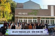 시민행정신문 강갑수 기자 | 울산중구가족센터가 11월 10일 오전 10시 국립 대운산 치유의 숲에서 울산 지역 5개 구·군 가족센터 종사자 30명을 대상으로 ‘거점사업 종사자 역량 강화 교육’을 실시했다. 이번 교육은 가족센터 종사자의 스트레스 관리를 돕고 업무 역량을 강화하기 위해 마련됐다. 이날 참여자들은 산림교육전문가와 함께 숲을 거닐며 호흡·명상 체험, 차 치유(테라피) 활동 등을 하며 작은 여유를 즐겼다. 이어서 이용자별 서비스 역량 강화 훈련을 통해 고객 만족을 높이기 위한 소통 방법 등을 알아봤다. 한편, 울산중구가족센터는 앞서 지난 6월 울산광역시 다문화가족지원 거점센터로 지정됐다. 이를 바탕으로 성평등가족부와 권역 내 가족센터, 사회복지 관련 기관과의 관계망(네트워크)을 활성화하고 지역 서비스 자원을 연계 발굴하는 데 힘쓰고 있다. 서선자 울산중구가족센터장은 “이번 교육이 몸과 마음을 재충전하고 업무 역량을 키우는 시간이 되길 바란다”며 “앞으로도 5개 구·군 가족센터와 유기적으로 협력하며 주민들에게 전문적인 서비스를 제공하기 위해 노력하겠다”고 밝혔다.