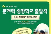 시민행정신문 강갑수 기자 | 광양시립도서관은 오는 4월 16일 오후 5시 광양꿈빛도서관 어린이실에서 '문해력 성장학교 출발식'을 개최한다고 밝혔다. 이번 사업은 디지털 이용 증가로 어린이들의 독서 시간이 줄고 문해력 저하 문제가 제기됨에 따라 이를 보완하기 위해 마련됐다. 초등 1~3학년을 대상으로 ‘천 권 읽기 챌린지’를 시작으로 '어린이 독서클럽', '어린이 작가학교'등 다양한 독서 프로그램을 운영할 계획이다. 출발식에는 그림책 '무인도에서 보내요', '팔팔어묵탕', '도서관을 꿀꺽한 공룡' 등을 집필한 김흥식 작가가 참여해 1인극 형식의 공연을 선보인다. 이날 행사에는 챌린지 참여 어린이 100여 명과 보호자가 함께하며, 문해력 성장학교의 운영 방식과 참여 방법을 안내하고 독서 여권을 배부할 예정이다. 특히 '팔팔어묵탕'을 활용한 오프닝 공연에서는 ‘어묵이의 문해력 성장 특급 비밀’을 주제로 ▲천 권 읽기 참가 선서 ▲독서 여권 사용법 ▲천 권 달성 시상식 ▲명예의 전당 등 프로그램 전반을 어린이 눈높이에 맞춰 안내할 예정이다. 문해력 성장학교는 광양꿈빛도서관, 광양