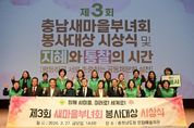 시민행정신문 강갑수 기자 | 김태흠 충남도지사는 27일 도청 문예회관에서 열린 제3회 충남새마을부녀회 봉사대상 시상식에 참석, 지역사회를 위해 헌신해온 부녀회장들을 격려했다. 충남새마을회와 충남새마을부녀회가 주최·주관한 이번 행사에는 김 지사와 정광섭 도의회 부의장, 강승규 국회의원, 김정임 새마을부녀회 중앙연합회장, 박숙희 충남새마을부녀회장, 시군 새마을부녀회장 등 800여 명이 참석했다. 행사는 표창 수여, 우수사례 발표, 약속문 낭독, 기념촬영 등의 순으로 진행했다. 표창 수여에서 대상은 천영옥 논산시 채운면 새마을부녀회장이 받았다. 천 회장은 2015년부터 11년 동안 채운면 새마을부녀회장을 역임하며, 독거노인 480세대에 밑반찬을 제공하고, 부녀회원과 독거노인 간 1대 1 결연을 통해 청소와 빨래 봉사 등을 꾸준히 이어올 수 있도록 이끌어온 공로를 인정받으며 이번 영예를 안았다. 채운면 부녀회는 또 매년 120세대에 김장김치와 연탄을 지원하고, 11년 동안 헌옷을 수거·판매해 수익금 전액을 취약계층에 기부하는 등 공동체 봉사에 헌신해왔다. 우수상은 송미경 홍성