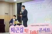 시민행정신문 강갑수 기자 | 인천 서구는 지난 30일 저녁 서구청 대회의실에서 검암경서동, 연희동 주민 약 160여 명과 함께 ‘퇴근길 톡! Talk! 콘서트’를 열고 서구의 미래 비전을 공유했다. ‘퇴근길 톡! Talk! 콘서트’는 평소 구정 참여가 어려운 직장인들을 위해 야간 시간대에 진행되는 주민 소통 행사로, 강범석 구청장은 2023년 청라 권역, 2024년 검단 권역, 2025년 8월 가정‧신현원창‧석남‧가좌 권역 그리고 9월 검암경서‧연희 권역까지 모든 권역 구민과 직접 만나는 소통의 여정을 완성했다. 이번 검암경서‧연희 권역 행사에서 강범석 구청장은 교통, 경제, 문화 등 구정 전반과 검암역세권 공공주택지구 개발, 공촌동 신개념 실내체육관 건립, 2026년 행정체제개편 계획 등 주요 사업을 쉽게 풀어 설명하며 주민들의 관심을 집중시켰다. 이어진 구민과의 대화 시간에는 “문화활동 지원에도 힘써달라”, “육아에 대한 아낌없는 지원을 바란다” 등 여러 의견이 이어졌다. 구청장은 주민의 목소리에 귀 기울이고 현황을 답변하며 구민들의 궁금증을 해소했다. 한편 이번 행사에는 유관기관인 인천도시