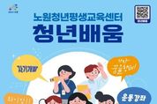 시민행정신문 강갑수 기자 | 서울 노원구가 청년들을 위한 평생학습센터 '청년 배움'을 개소한다고 밝혔다. 구는 그간 청년들의 평생학습 기회 확대를 위해 한국성서대학교와 협력해 ‘다 담다’ 프로젝트를 운영해 왔다. 이를 통해 쌓은 경험과 성과를 바탕으로, 보다 안정적이고 지속적인 교육 제공을 위해 ‘청년 배움’을 개소하고, 구 직영으로 운영한다. ‘청년 배움’은 지난 8월 시범운영을 시작해 10월 1일 정식 개관했다. 운영 시간은 평일 오전 10시부터 오후 8시까지, 토요일은 오전 10시부터 오후 5시까지이며, 일요일과 공휴일은 휴관한다. 시범운영 기간동안 ‘청년 맞춤 발성훈련 클래스’, ‘바른자세 만들기 SNPE’, ‘몸과 마음 힐링 스트레칭’ 등 프로그램이 운영됐으며, 모든 강좌가 접수 당일 마감되는 등 높은 호응을 얻었다. 정식 개관 후 프로그램은 취업 및 실생활에 밀접하게 연관된 4개 영역 27개 과정으로 구성됐다. ‘청년 실전 up’ 영역에서는 ▲커뮤니케이션 및 면접 스피치 ▲브이로그 콘텐츠 기획 ▲소비 습관 진단 ▲브랜딩 스토리 등 7개 실전형 프로그램이 운영된다. ‘청년 마음