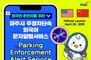 시민행정신문 강갑수 기자 | 파주시는 4월 20일부터 외국인 운전자를 대상으로 한 ‘주정차 단속 외국어 문자 알림 서비스’를 시행한다. 이번 서비스는 주정차 금지 구역에 차량을 세운 운전자에게 실시간으로 단속 상황을 안내해 자발적인 차량 이동을 유도함으로써 과태료 부과를 사전에 방지하기 위한 기존 제도를 외국인까지 확대한 조치로, 최근 파주시 내 외국인 거주자와 운전자가 꾸준히 증가하는 추세를 적극 반영한 결과다. 2026년 3월 기준 외국인 정보 공동이용 시스템 자료에 따르면 파주시 등록 외국인은 19,841명으로 확인됐으며, 지난해 파주시에서 외국인 소유 차량의 주정차 위반 사례가 1,155명에 걸쳐 총 1,797건 발생한 것으로 집계됐다. 시는 이러한 현실을 고려할 때 외국인 운전자의 단속행정 이해를 돕고자 외국어 알림 서비스 도입이 필요하다는 판단이다. 시는 통계상 비중이 높고 범용성이 넓은 영어와 중국어 안내 서비스를 도입하기로 결정했다. 해당 서비스는 시행일 이후 차량 소유자의 주소지와 상관없이 파주시를 운행하는 모든 차량을 대상으로 온라인으로 신청할 수 있다. 또한 파주시청 누리집에서 한글 검색어뿐