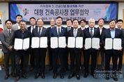 시민행정신문 강갑수 기자 | 대전 중구는 지난 31일 구청 중회의실에서 지역경제 활성화와 건설산업의 경쟁력 강화를 위해 대형건축사업장과‘지역건설산업 활성화 업무협약(MOU)’을 체결했다고 밝혔다. 이번 협약에는 ▲용두동 722번지 일원 공동주택(427세대) ▲유천1구역 지역주택조합 주거복합(930세대) 등 2개 건축사업장이 포함됐다. 협약식에는 ▲진흥기업㈜ ▲㈜태영건설 ▲대한전문건설협회 대전광역시회 ▲(사)대전건설건축자재협회 ▲대한기계설비건설협회 대전ㆍ세종ㆍ충남도회 등 관련 업체 및 협회가 참석해 지역 건설산업 상생 발전을 위한 뜻을 함께했다. 구는 이번 협약을 통해 전체 하도급 공사금액의 70% 이상을 대전 지역 업체(시공, 건설자재, 인력, 장비 등)에 발주하기로 협의하고, 지역 업체가 보유한 건설 신기술과 특허 사용을 적극 장려하는 한편, 사업 추진 과정에서 발생하는 각종 현안에 대해서도 행정적 지원을 아끼지 않을 계획이라고 밝혔다. 김제선 중구청장은“이번 협약이 지역 건설산업의 지속가능한 성장 기반을 마련하고, 구 건설경기에 활력을 불어넣는 계기가 되길 바란다”라며, “앞으로도 지역 기업이