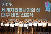 시민행정신문 강갑수 기자 | 대구광역시는 3월 23일 오후 2시, iM뱅크 제2본점에서 대구광역시자원봉사센터와 함께 ‘2026년 세계자원봉사자의 해 대구비전 선포식’을 성황리에 개최했다. 이번 선포식은 유엔(UN)이 2001년 이후 25년 만에 다시 지정한 ‘2026 세계자원봉사자의 해’를 맞아 대구만의 차별화된 자원봉사 모델을 구축하고 새로운 도약을 선언하기 위해 마련됐다. 대구시는 전국 최초로 6년 연속 자원봉사 우수도시로 선정되는 등 자원봉사 선도도시로서의 위상을 이어가고 있다. 특히 올해는 전국 최초로 설립된 대구시자원봉사센터가 개소 30주년을 맞는 뜻깊은 해로, 지난 성과를 돌아보고 미래 30년의 청사진을 제시하는 데 중점을 뒀다. 이날 행사에는 안중곤 대구시 행정국장, 윤영애 대구시의회 기획행정위원회 위원장, 홍정우 행정안전부 민간협력공동체과장을 비롯해 한국중앙자원봉사센터 등 100여 개 유관기관 관계자와 자원봉사자 350여 명이 참석했다. 행사는 홍보영상 상영을 시작으로 ▲개회식 ▲비전 선언문 낭독 ▲선포 퍼포먼스 ▲축하공연 순으로 진행됐다. 참석자들은 선언문을 함께 낭독하며 자원봉사의