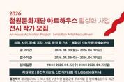 시민행정신문 기자 | (재)철원문화재단은 2026년 아트하우스 전시에 참여할 작가를 오는 4월 8일부터 17일까지 공개 모집한다. 이번 공모는 단순히 작품을 전시하는 형식을 넘어, 전시 공간에서의 관람 경험, 체험 프로그램, 도슨트 운영까지 작가와 함께 만들어가는 전시로 운영될 예정이다. 아트하우스는 지역 주민과 방문객이 일상 속에서 자연스럽게 예술을 경험할 수 있도록 조성된 문화예술 공간으로, 2026년에는 공모전시 4회와 기획전시 2회를 운영할 예정이며, 지난해에는 공모전시 3회와 대관전시 3회를 진행하는 등 다양한 전시와 체험 프로그램을 통해 생활 밀착형 예술 향유 기회를 꾸준히 제공해왔다. 이번 공모를 통해 선정된 작가는 전시 기간 동안 작품 설치 및 철수, 공간 구성, 관람 동선 기획, 관람객 대상 체험 프로그램(해당 시), 도슨트 운영 협력, 홍보 협조 등 전시 전반의 운영 과정에 참여하게 된다. 철원문화재단 박현웅 본부장은 “이번 공모는 전시 결과물뿐 아니라 전시가 운영되는 전 과정을 작가와 함께 만들어가는 협력 프로젝트로, 작가의 창작활동을 적극 지원하는 데 중점을 두고 있다”며,
