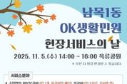 시민행정신문 강갑수 기자 | 울산 동구는 오는 11월 5일 오후 2시부터 4시까지 옥류공원에서 ‘남목1동 OK생활민원 현장서비스의 날’ 행사를 개최한다. 이번 행사는 올해 여덟 번째로 열리는 OK생활민원 현장서비스의 날 행사로 주민들의 일상생활 속 불편 해소와 삶의 질 향상을 위한 다양한 분야로 구성했으며, 이번 행사 운영을 위해 자원봉사자, 민간 기술자, 관계 공무원 등 90여 명이 참여한다. 서비스 분야는 총 8개로 주민 편익(칼갈이, 분갈이, 자전거 수리, 안경 및 귀금속 세척), 건강관리(심혈관질환, 비만 예방, 치매 예방), 구정 홍보(탄소중립 생활 실천 홍보), 생활안전(심폐소생술 체험, 소화기 사용 체험), 생활 상담(구민 고충 상담), 동 특화사업(이웃사랑 실천! 복지사각지대 없는 행복 남목1동) 등이 있다. 유료 체험 부스로는 반려식물 키우기 체험이 마련되는데, 1인당 1개만 가능하며 빈 화분을 지참해야 하고 체험비는 현금으로 받는다. 2025년 OK생활민원 현장서비스의 날 전체 일정 및 남목1동 행사 정보는 울산 동구청 홈페이지[알림사항]에서 확인 할 수 있다.
