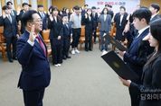 시민행정신문 강갑수 기자 | 이장우 대전시장은 30일 시청 대회의실에서 2025년도 대전시 새내기 공직자 44명에게 임용장을 수여했다. 이장우 시장은 “대전시 공무원으로 임용된 것을 진심으로 축하한다”라면서 “앞으로 동료들과 협업하고 시민들과 적극적으로 소통하며 맡은 바 최선을 다하는 책임 있는 공직자가 되어주길 바란다”라고 당부했다.