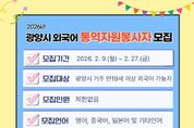 시민행정신문 강갑수 기자 | 광양시는 각종 축제와 국제행사에서의 통역 지원과 외국인 민원 안내 등 다양한 분야에서 통역 봉사에 참여할 시민 외국어 통역자원봉사자를 2월 9일부터 2월 27일까지 모집한다고 밝혔다. 모집 대상은 공고일 기준 광양시에 거주하는 만 19세 이상 시민으로, 영어·중국어·일본어를 비롯한 기타 외국어 구사가 가능하면 누구나 신청할 수 있다. 선발된 통역자원봉사자는 매화축제 등 광양시 주요 축제와 각종 대형 행사에서 외국인 대상 현장 안내 및 통역을 지원하게 되며, 관내 기관·업체 협조 요청에 따른 통역 지원, 외국인 관광객 및 광양시 거주 외국인을 대상으로 한 안내·민원 협조 등 다양한 활동을 수행하게 된다. 시는 통역자원봉사자에게 자원봉사 실적 입력 및 관리 서비스를 제공하고, 활동 우수자에 대해서는 표창 또는 감사패 수여, 향후 광양시 명예통역관 위촉 시 우선 고려하는 등 인센티브를 제공할 계획이다. 아울러 국내 통·번역 특성화 대학과 연계해 통역자원봉사자의 전문성을 높이기 위한 온라인 통역 교육도 운영할 예정이다. 신청은 시 누리집 공고·공지사항에서 신청서를