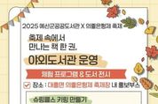 시민행정신문 강갑수 기자 | 예산군 공공도서관은 11월 8일부터 9일까지 이틀간 열리는 ‘2025 의좋은형제축제’ 현장에서 ‘야외 도서관’을 운영한다고 밝혔다. 이번 행사는 지역 주민과 관광객이 함께 즐길 수 있는 체험형 독서문화 프로그램으로 구성됐으며, 어린이부터 가족 단위 방문객까지 누구나 자유롭게 참여할 수 있다. 야외 도서관은 축제장 내 홍보부스에서 운영되며, 방문객들은 △슈링클스 키링 만들기 △걱정인형 만들기 등 다양한 창의 체험 활동을 즐길 수 있고 도서 전시 및 열람 공간을 마련해 관람객이 자유롭게 책을 읽으며 휴식할 수 있는 열린 독서문화 공간으로 운영될 예정이다. 이번 프로그램은 주민의 참여와 소통, 배움이 어우러지는 독서·체험의 장을 조성하기 위한 취지로 마련됐다. 야외 도서관은 축제 기간인 11월 8일과 9일 오전 10시부터 오후 4시까지 운영되며, 참가 신청은 현장에서 선착순으로 접수한다. 공공도서관 관계자는 “이번 야외 도서관 운영을 통해 주민들이 도서관을 보다 친숙하게 느끼고, 책과 함께하는 문화를 자연스럽게 경험하길 바란다”고 말했다.