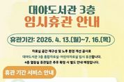 시민행정신문 강갑수 기자 | 군포시 대야도서관은 노후된 자료실 환경을 개선하고 이용자 중심의 효율적인 공간 재구성을 위해 오는 4월 13일부터 7월 16일까지 리모델링 공사를 실시하고, 해당 기간동안 3층 자료실을 임시휴관한다고 밝혔다. 이번 사업은 ‘2026년 경기도 노후공공도서관 환경개선 사업’에 선정되어 추진되는 것으로, 도비 9천만원과 시비 2억1천만원 등 총 3억원의 사업비가 투입된다. 대야도서관은 2003년 개관 이후 23년이 경과함에 따라 노후화된 자료실 집기를 전면 교체하고, 자료실 간 구분된 공간의 경계를 허물어 통합형 공간으로 재구성할 계획이다. 또한 로비에 통합안내데스크를 설치해 이용자 동선을 효율적으로 개선하고, 무인도서대출반납기 설치 등 보다 편리한 자료 이용 환경을 조성할 방침이다. 휴관기간 동안 3층 자료실 이용과 도서대출 등 관련 서비스는 전면 중단된다. 다만, 도서반납은 건물 1층 입구에 설치된 무인반납기를 통해 가능하며, 희망도서 및 상호대차 도서 수령과 정기간행물 열람은 4층 디지털자료실에서 이용할 수 있다. 이번 임시휴관 대상에는 4층 열람실(디지털자료실 포함)은