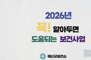 시민행정신문 기자 | 예산군보건소는 2026년 새해를 맞아 군민에게 필요한 보건사업 정보를 알기 쉽게 전달하기 위해 보건사업 홍보영상을 제작했다고 밝혔다. 이번 홍보영상에는 군민 건강 증진을 위해 보건소에서 추진하는 다양한 사업 내용이 담겼다. 주요 내용은 △50세 이상 무료 대상포진 예방접종 △65세 이상 무료 폐렴구균 예방접종 △의료취약지 원격협진 사업 △정신건강 심리상담 바우처 사업 △치매환자 실종예방 지원사업 △난임 시술비 지원 △취약계층 건강관리 및 환자 병원 이송 사업 등이다. 특히 2026년 신규사업으로 △산후조리원 비용 지원사업 △임산부 진료 교통비 지원사업을 포함해 출산 가정의 경제적 부담을 덜고 의료 접근성을 높이는 사업도 소개됐다. 산후조리원 이용 비용은 최대 100만원까지 지원되며, 임신 중 병·의원 방문에 따른 교통비도 지원받을 수 있다. 보건소 관계자는 “이번 홍보영상을 통해 군민들이 보건소에서 제공하는 다양한 서비스를 쉽게 접하고 적극 활용하길 바란다”며 “앞으로도 군민의 건강한 삶을 위해 최선을 다하겠다”고 말했다.