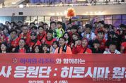 시민행정신문 강갑수 기자 | 강원특별자치도는 11월 4일 오후 5시 30분, 일본 히로시마 에디온 피스 윙 스타디움 원정석 게이트 앞에서 ‘강원FC 승리기원 행사’를 개최했다고 밝혔다. - 이번 행사는 2024~2025 아시아 챔피언스리그 조별리그 원정경기를 앞두고 선수단의 선전을 기원하고, 원정응원단을 격려하기 위해 마련됐다. 이 자리에는 김진태 도지사, 김시성 도의회의장을 비롯한 도 대표단, 주히로시마 총영사관, 현지교민, 히로시마 청소년문화센터 청소년, 강원FC 팬 등 '강원이나르샤 응원단' 약 200명이 참석했다. 이날 현장에서는 팬 선발 경쟁률 5.56대 1(신청자 556명, 선정자 100명)을 뚫고 일본 원정길에 오른 강원 FC 팬들이 히로시마 현지 청소년과 교민들과 함께 뜨거운 응원전을 펼치며 열기를 더했다. 히로시마 청소년 아카사카 마유카 학생은 한국어로 “오늘 이렇게 강원FC 경기를 직접 볼 수 있어 영광”이라며, “친구들과 이 자리에 함께한 분들과 진심으로 응원하겠다”고 말했다. 김시성 의장은 “승리를 위해 우리가 똘똘 뭉쳐 응원을 잘해야 한다”며, “응원의 힘이 곧