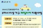 시민행정신문 강갑수 기자 | 군산시는 다자녀 가구의 경제적 부담을 완화하고 이동 편의를 제공하여 저출생 위기를 극복하고자 ‘2026년 전북특별자치도 3자녀 이상 가구 패밀리카 지원사업’ 참여자를 모집한다고 밝혔다. 이번 사업은 전북자치도 내에 1년 이상 계속 거주하면서 군산시에 주소를 둔 18세 이하의 자녀 3명 이상을 양육하는 가구를 대상으로 하며, 공고일 기준 자녀 중 3명 이상이 2007년 4월 1일 이후 출생한 경우에 신청할 수 있다. 지원 대상으로 선정된 총 30가구에게는 6~11인승 패밀리카 신차 구입비의 10%, 가구당 최대 500만 원까지 지원금이 지급된다. 지원 가능한 차량은 2026년 1월 1일 이후 계약하고 공고일 이후 신규로 등록된 국산 승용 또는 승합자동차에 한하며, 전기자동차를 구매할 경우에는 기존의 전기차 보조금을 제외한 실제 차량 구입비를 기준으로 지원금이 산정된다. 다만 공고일 기준 가족 구성원이 7년 이내의 패밀리카를 이미 보유하고 있거나, 지방세를 체납 중인 경우 등은 지원 대상에서 제외된다. 또한 5인승 차량을 2대 이상 보유했거나 7년이 경과한 패밀