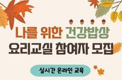 시민행정신문 강갑수 기자 | 서원주건강생활지원센터는 지역 주민의 올바른 식습관 형성과 대사증후군 예방·관리를 돕기 위해 ‘나를 위한 건강밥상 요리교실’ 프로그램 참여자를 모집한다. 이번 요리교실 프로그램은 10월 15일부터 11월 5일까지 매주 수요일마다 총 4회에 걸쳐 운영된다. 활동은 실시간 온라인 수업으로 오전 10시 30분부터 11시 30분까지 1시간 동안 진행되며, 참가비는 무료다. 모집 인원은 온라인 수업이 가능한 지역 주민 30명이며, 참여 신청은 9월 29일부터 10월 1일 전화로 선착순 접수한다. 단, 상반기 같은 과정 참여자는 신청이 제한된다.