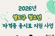 시민행정신문 강갑수 기자 | 부산시 영도구는 청소년의 자기계발과 미래 역량 강화를 지원하기 위해 ‘2026년 영도구 청소년 자격증 응시료 지원사업’을 시행한다. 이번 사업은 자격증 취득을 희망하는 청소년들에게 다양한 진로 탐색과 역량 개발의 기회를 제공하기 위해 마련됐다. 지원 대상은 영도구에 1년 이상 주민등록을 두고 거주하는 9세부터 18세(2008년~2017년생) 청소년으로, 2026년에 시행되는 국가기술자격, 국가공인자격, 민간자격 시험 응시료를 지원한다. 지원 금액은 청소년 1인당 연 최대 10만 원 한도로 실제 응시한 자격증 시험의 응시료에 한해 지원되며, 예산 소진 시 조기 마감될 수 있다. 신청 기간은 2026년 1월 15일부터 12월 18일까지다. 영도구청 홈페이지를 통해 온라인으로 접수할 수 있으며, 제출 서류를 바탕으로 자격 요건 확인을 거쳐 지원금을 지급할 예정이다. 자세한 사항은 영도구청 홈페이지 내 ‘청소년 자격증 응시료 지원’ 게시판에서 확인할 수 있다. 영도구 관계자는 “이번 사업이 청소년 가정의 경제적 부담을 덜어주는 동시에, 청소년들이 관심