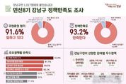 시민행정신문 강갑수 기자 | 꿈이 모이는 도시, 미래를 그리는 강남구 정책 만족도 조사에서 구정 운영에 대한 긍정 평가가 91.6%에 달하는 것으로 나타났다. 10명 중 9명이 “잘하고 있다”고 평가한 것이다. 특히 정책 전반에 대한 만족도는 93.2%로, 주민 체감도가 높은 생활 밀착형 정책들이 구정 신뢰도를 견인하고 있음을 보여줬다. 가장 성과를 내고 있다고 생각하는 분야는 교육·보육(23.1%), 최우선으로 추진할 분야로 경제·일자리(30.4%)를 꼽았다. 이번 조사는 ㈜국민리서치앤컨설팅그룹이 강남구 거주 만 18세 이상 성인 1,017명을 대상으로 2025년 10월 3일부터 14일까지 1대1 면접조사 방식으로 진행했다. 95% 신뢰수준에 표본오차는 ±3.1%포인트다. 정책 분야별로는 ‘즐거운 축제 도시’ 정책에 대한 만족도가 가장 높았고, ‘여가·문화시설 확충’ 분야는 ‘매우 만족’ 응답 비율이 32.6%로 가장 높았다. 여가 분야에서는 서울시 최대 규모의 탄천파크골프장과 전국 최대 스포츠클라이밍센터, 세곡체육공원, 시니어센터 신축 등 실용적인 시설 확충이 긍정 평가를 끌어냈다. ‘일자리·경제 활성화’