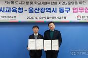시민행정신문 강갑수 기자 | 울산광역시 동구와 울산광역시교육청은 12월 10일 오전 11시 울산광역시 교육청에서 남목 도시재생 및 학교시설 복합화 사업 조성 및 운영에 관한 협약식을 체결했다. 이번 협약은 교육부 학교 복합화 공모사업 선정으로 기존 공영주차장 조성 계획을 복합커뮤니티센터까지 확대함에 따라 조성 및 운영·관리 협력 체계를 마련하기 위한 것이다. 양 기관은 협약을 통해 남목초 일대 주차난 해소, 학교 교육환경 개선 및 지역주민 이용 활성화를 목표로 하고 있다. 동구는 남목 도시재생 및 학교시설 복합화 사업을 통해 남목초등학교 지하 1층~지상 1층에 102면 규모의 공영주차장을 조성하고, 주민 커뮤니티 공간을 조성할 계획이다. 동구 관계자는 “학생과 지역이 함께 이용하는 생활 SOC 거점으로 조성하고, 교육환경 개선과 지역공동체 활성화를 동시에 실현하는 사업으로 추진하겠다”고 말했다