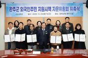 시민행정신문 강갑수 기자 | 완주군이 외국인 주민 지원 정책의 체계적 추진을 위해 ‘외국인주민 지원시책 자문위원회’를 구성하고, 지난 23일 중회의실에서 위촉식을 열었다. 위원장인 문성철 부군수를 비롯해 관계 공무원, 학계, 경찰, 노동청, 가족센터 등 다양한 분야의 전문가 12명이 참여한다. 자문위원회는 완주군 외국인정책팀 신설(7월)과 완주외국인지원센터 개소(8월)에 이어, 외국인 주민들의 안정적인 정착과 지역사회 통합을 위한 정책 추진을 더욱 내실 있게 하기 위해 출범했다. 위촉식에서는 완주군 외국인정책 향후 추진 방향에 대한 심도 있는 논의가 이루어졌다. 유희태 완주군수는 “완주군에는 5,190명의 외국인 주민이 함께 살아가고 있으며, 다양한 국적과 문화적 배경을 가진 이들이 우리 지역의 소중한 이웃으로 자리 잡고 있다”며 “자문위원회는 외국인 주민들의 실제 생활 속 어려움과 요구를 반영하고 지역사회와 상생을 도모하는 중요한 창구가 될 것”이라고 말했다. 이어 “위원들의 전문성과 경험을 바탕으로 외국인정책이 실효성 있고 지속가능하게 발전하길 기대하며, 외국인 주민과 지역사회가 조