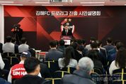 시민행정신문 장규호 기자 | 2025년 K3리그 우승컵을 들어올린 김해FC2008(이하 김해FC)이 내년 프로리그 진출에 따른 시민설명회를 성황리에 개최했다. 28일 김해종합운동장에서 열린 설명회에는 재단법인 김해FC 이사장인 홍태용 김해시장과 축구협회 임원진과 관계자를 비롯해 김해시 체육회와 유관단체, 시민과 축구팬 200여명이 참석해 설명회장을 가득 메웠다. 현장에 참석하지 못한 시민들은 김해시 공식 유튜브 채널에서 생중계를 시청했다. 김해FC는 구단의 프로리그 진출 배경에 대해 ‘시민 스포츠 문화 요구 충족’과 ‘지역 경제 파급효과 확대’를 통한 구단 발전 선순환 고리 구축이 목적이라고 밝혔다. 중장기 목표로 2030년까지 홈 경기 평균 관중 5,000명, 2035년까지 구단 재정 자립 70% 달성 등을 내세우며 이를 실현하기 위한 구단의 5대 핵심전략인 ‘Iron Project Series’를 구체적으로 설명했다. 또 김해FC의 미래 비전인 ‘축구를 넘어서 김해의 역사와 현재 그리고 미래를 잇는 생활 속 시민구단’에 대해 ▲지자체 예산 의존에서 벗어나 자립하는 구단 ▲단순한 축