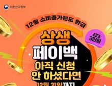 시민행정신문 장규호 기자 | 12월 소비증가분도 환급 상생페이백 아직 신청 안 하셨다면 - 12월 31일까지 - 최대 3만 원 ※ 상생페이백 9~12월 월별 카드 소비액이 지난해 월평균 소비액보다 늘면 월별 소비액의 20%를 디지털 온누리상품권으로 환급 (12월, 최대 3만 원) *12월에 처음 신청했다면, 9~11월분은 잔여 예산 상황에 따라 지급 여부 결정