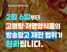시민행정신문 장규호 기자 | ■ 2월 6일부터 고열량·저영양식품의 방송광고 제한 범위가 완화됩니다. 17~19시 모든 프로그램 → 17~19시 어린이 주시청대상 프로그램 어린이 대상 드라마·퀴즈·게임·다큐멘터리· 애니메이션, 어린이 교육 및 정보 등