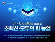 시민행정신문 장규호 기자 | ■ 누구나, 쉽게, 전문적으로 경영하는 초혁신·모두의 AI 농업 AI와 로봇을 활용한 농업을 현장에 확산시켜 농사 효율을 높이고, 세계로 수출하는 산업이 될 수 있도록 지원하겠습니다! - 생산성·수익성 향상 · 맞춤형 AI 영농처방으로 비용 절감 및 생산성 향상 · 어렵고 힘든 농작업은 AI·로봇으로 농작업 부담 완화 및 삶의 질 개선 · AI를 통한 개체별 맞춤 사양관리 및 질병 조기 감지·예방 - 글로벌 농업 선도 · 국산 AI 기술 확산과 AI팜 패키지 수출로 글로벌 시장 선점
