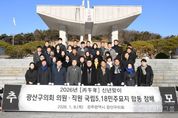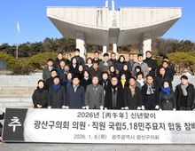 시민행정신문 기자 | 광산구의회가 8일 국립5·18민주묘지 합동 참배와 배식 봉사활동을 통해 병오년 새해 의정활동의 포문을 열었다. 이번 국립5·18민주묘지 합동 참배는 2026년 의정활동의 출발을 민주·인권·평화의 ‘5·18 정신’과 함께하고자 하는 의지를 담아 마련됐다. 특히 새해 첫 공식 일정을 참배로 시작한 것은 구민을 향한 책임 있는 의정활동과 올바른 지방자치 실현에 대한 각오를 보여주는 행보로 의미를 더했다. 이날 참배에는 김명수 의장을 비롯한 광산구의원들과 의회사무국 전 직원 등 60여 명이 참석했다. 참석자들은 헌화와 분향, 묵념으로 민주 영령의 숭고한 희생을 기리며 민주주의 가치 계승을 다짐하고 지역사회 발전과 구민의 안녕을 기원했다. 참배 후 김 의장과 의원들은 더불어락 노인복지관을 방문해 배식 봉사활동을 펼쳤다. 의원들은 어르신들을 위해 직접 중식 배식에 참여하며 나눔과 봉사의 가치를 실천했으며, 종사자들과의 간담회를 통해 복지 현장의 애로사항을 청취하는 등 소통의 시간도 가졌다. 김명수 의장은 “새해를 맞아 첫 공식 의정활동으로 민주묘지와 복지 현장을 찾았다는 점에서 의미가