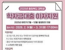 시민행정신문 강갑수 기자 | 청주시는 지역 내 대학생 및 졸업생의 경제적 부담을 덜기 위해 ‘청주시 대학생 학자금대출 이자지원’ 사업 신청을 오는 3월 31일 오후 5시까지 접수한다고 17일 밝혔다. 지원 대상은 한국장학재단을 통해 학자금대출을 받은 국내 대학 재(휴)학생과 2020년 이후 졸업생 중 미취업자다. 또한 본인 또는 직계존속 중 1명이 공고일(2026. 2. 9.) 기준 청주시에 주민등록상 1년 이상 거주하고 있으면 신청할 수 있다. 신청은 충북인재평생교육진흥원 누리집에서 온라인으로 진행되며, 제출 서류에 대한 심사를 거쳐 5월 중 이자 지원이 이뤄질 예정이다. 지원 대상자로 선정되면 한국장학재단에서 대출받은 등록금 및 생활비에 대해 2025년 하반기(7~12월) 발생 이자를 지원받는다. 지원금은 개인계좌로 지급되지 않고, 한국장학재단 대출계좌 원리금에서 상환 처리되는 방식으로 진행된다. 시 관계자는 “대학생들이 금전적인 어려움 없이 학업 활동과 취업 준비에 집중할 수 있도록 이번 사업이 작은 보탬이 되기를 바란다”고 말했다.