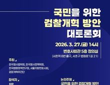 시민행정신문 장규호 기자 | 국민을 위한 검찰개혁 방안 대토론회 - 2026.3.27.(금) 14시 변호사회관 5층 정의실 (서초역 8번 출구, 서초구 법원로1길 21) ■ 주최 한국형사법학회, 한국형사정책학회, 한국법령정책연구원, 서울지방변호사회, 검찰개혁추진단 ■ 참석자 (좌장) - 김재봉 한양대학교 법학전문대학원 교수 (발제) - 최호진 단국대학교 법학과 교수 - 이원상 조선대학교 법학과 교수 (토론) - 홍진영 서울대학교 법학전문대학원 교수 - 이윤제 명지대학교 법학과 교수 - 김기원 서울지방변호사회 수석부회장 - 김규현 엘케이비평산 변호사 - 송지헌 서울경찰청 수사부 경정 ■ 논의주제 국민을 위한 검찰개혁 방안 (발제1) 공정한 형사절차를 위한 보완수사의 구조적 필연성과 책임의 배분(최호진 교수) (발제2) 공소청 검사와 수사기관의 협력의무 구체화 방안(이원상 교수)