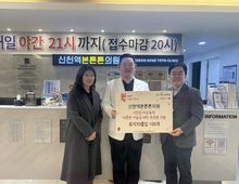 시민행정신문 강갑수 기자 | 신천역본튼튼의원은 지난 12월 9일 신천동 행정복지센터(동장 신화철)에 휴지 30롤, 100개를 전달하며 이웃 사랑을 실천했다. 전달식에는 본튼튼의원 원종찬 대표원장과 신화철 신천동장이 참석했으며, 후원 물품은 시흥시1%복지재단 기탁을 통해 관내 취약계층 100가구에 전달될 예정이다. 척추ㆍ관절 전문병원인 신천역본튼튼의원은 2021년 개원한 이래 매년 설과 추석 명절마다 꾸준히 물품을 기부하며 지역 사회와 함께하고 있다. 이번 후원 역시 지속적인 나눔 활동의 연장선으로 연말을 앞두고 지역 사회에 온기를 전하고자 하는 대표원장의 뜻이 반영된 것으로 전해졌다. 원종찬 본튼튼의원 대표원장은 “환자로 내원하는 주민들을 통해 살기가 더 힘들다는 말을 자주 듣는다. 주민들에게 조금이나마 위로를 전하고 싶어 이번 후원을 결정했다. 앞으로도 지역 사회와 함께하는 병원이 되기 위해 노력하겠다”라고 말했다. 신화철 신천동장은 “연말을 맞아 따뜻한 마음을 전해준 신천역본튼튼의원에 깊이 감사드린다”라며 “기탁된 물품은 도움이 필요한 가정에 소중히 전달하겠다”라고 말했다.