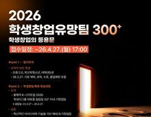 시민행정신문 김학영 기자 | 교육부와 한국청년기업가정신재단(이사장 한정화)은 '2026 학생 창업유망팀 300+' 참가팀을 4월 8일부터 4월 27일까지 모집한다. ‘학생 창업유망팀 300+’는 전국 초·중·고·대학(원)생과 학교 밖 청소년에게 창업교육과 1:1지도(멘토링)를 지원하는 대표적인 학생창업가 육성 프로그램이다. 2016년 시작 이후 작년까지 약 1만 개 팀이 참가했으며, 지난해에는 역대 최대 규모인 1,508팀이 지원하는 등 매년 학생들의 참여가 증가하고 있다. 올해는 ‘성장트랙’과 ‘도약트랙’을 합쳐 5월 말 총 400팀을 선발한다. ‘성장트랙(360팀)’은 예비창업팀과 창업팀 모두 지원 가능하며, ‘전문대 트랙(50팀)’과 ‘외국인 유학생 트랙(10팀)’을 포함하여 선발한다. ‘도약트랙(40팀)’은 창업팀을 대상으로 투자유치 역량 강화에 집중하며, 상위 19개 팀에게는 범부처 통합 창업 경진대회인 '올해의 케이(K)-스타트업 2026'의 본선 진출 기회를 부여한다. 특히, 올해는 선배 창업가들과 직접 교류하는 실전 밀착형 교육 프로그램을 강화하여 운영한다. 선발팀 전원에게는 분야별·지역별 네트워킹과 1:1지도(멘토링)를 제공하고, 우수팀에게는