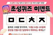 시민행정신문 강갑수 기자 | 원주시는 10월 13일부터 26일까지 공식 인스타그램에서 초성퀴즈 이벤트를 실시한다. 시는 앞서 두 차례의 SNS 활성화 이벤트를 진행했으며, 올해 마지막인 세 번째 행사로 인스타그램 초성퀴즈를 준비했다. 이번 초성퀴즈 제시어는 ‘ㅁㄷㅊㅈ’이며, 문제는 10월 24일부터 26일까지 3일간 원주 중앙동 전통시장 일원에서 열리는 축제의 이름이다. 이벤트에 참여하려면 원주시 공식 인스타그램을 팔로우한 뒤, 퀴즈 정답과 팔로우 인증 사진을 이벤트 참여 페이지(네이버 폼)에 입력·제출하면 된다. 기존 구독자를 포함해 전 국민 누구나 참여할 수 있다. 추첨을 통해 총 100명에게 치킨세트(3명)와 커피(97명) 쿠폰이 지급된다. 이벤트 당첨자는 10월 31일 발표되며, 경품은 11월 4일 발송될 예정이다. 자세한 내용은 원주시 공식 SNS(인스타그램, 페이스북, 블로그), 홈페이지, 전광판 등에서 확인할 수 있다. 한편 원주시 공식 인스타그램은 현재 31,779명의 팔로워를 보유하고 있으며, 유익한 시정 소식과 함께 주요 행사, 축제 등 다양한 볼거리와 즐길 거리를 숏