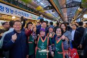 시민행정신문 이존영 기자 | 이재명 대통령은 30일 오후 제주 타운홀미팅 '제주의 마음을 듣다' 종료 후, 김혜경 여사와 함께 1박 2일 제주 일정의 마지막 일정으로 동문시장을 방문했다. 동문시장은 제주시 도심에 위치한 대표적인 전통시장으로, 대통령 부부의 방문 소식에 상인들과 방문객들은 놀라움 속에 환호와 박수로 이들을 맞이했다. 입구에 서 있던 한 외국인 관광객은 어디서 왔냐는 이 대통령의 질문에 “오스트레일리아”고 답하기도 했다. 이 대통령 부부는 셀카촬영과 악수를 이어가며 과일모찌 가게에 들러 온누리상품권으로 한라봉모찌와 딸기모찌를 구입해 즉석에서 강유정 대변인, 하정우 수석 등과 함께 시식했다. 이동 내내 이어지는 셀카요청에도 이 대통령 부부는 반갑게 응했다. 그러자 시장을 찾은 많은 도민들은 이동 중인 이 대통령 부부를 향해 "사랑해요", "와 대박", "화이팅"을 외치는 소리로 화답했다. 이 대통령은 특히 어린이들의 사진 요청에 적극적으로 답했다. "애기 있어요"라는 소리가 들리면 발걸음을 멈추고 아이들과 하이파이브를 하거나 반갑게 셀카를 찍었다. 또한 강아지를