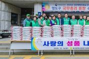 시민행정신문 강갑수 기자 | 부산광역시 영도구 새마을회(회장 김철호)는 연말연시를 맞아 지역 내 소외되고 도움이 필요한 이웃들에게 따뜻한 격려와 온정을 전하고자, 지난 12월 16일 영도구청 광장에서 ‘따뜻한 겨울나기 사랑의 성품 나누기 행사’를 개최했다. 이번 행사는 경제적 어려움으로 힘든 시기를 보내고 있는 이웃들에게 희망과 용기를 전하고, 나눔과 배려를 실천하는 공동체 문화를 확산하기 위해 마련됐다. 특히 지역사회와 늘 함께하는 새마을지도자들의 역할을 되새기며, 이웃 돌봄과 나눔 실천의 가치를 공유하는 뜻깊은 자리로 의미를 더했다. 이날 행사에는 영도구청장을 비롯해 구지회장단, 각 동 부녀회장과 새마을지도자 등 40여 명이 참석했으며, 독거 어르신, 장애인 가정, 차상위계층 등 관내 취약계층 100세대에 장흥쌀(10kg)을 전달했다. 김철호 영도구 새마을회장은 “경기침체 등으로 모두가 어려운 시기일수록 주변의 소외된 이웃들에게 더 많은 관심과 따뜻한 손길이 필요하다”며 “오늘 전달한 장흥쌀이 이웃들의 겨울나기에 작은 힘이 되기를 바란다”고 말했다.