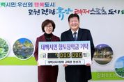 시민행정신문 강갑수 기자 | 태백시는 2월 8일 태백산국립공원 당골광장에서 열린 제33회 태백산 눈축제 현장에서 태백 출신 기업인 김경미 수성 F.L 대표가 고향사랑기부금 300만 원을 기탁했다고 밝혔다. 이날 기탁식은 구미융합회 회원들과 함께 눈축제 현장을 방문한 가운데 진행됐으며, 김경미 대표는 지난해에 이어 올해도 고향사랑기부에 동참하며 2년 연속 고향사랑을 실천했다. 김경미 대표는 태백 통리초등학교와 황지여자중학교를 졸업한 태백 출신 기업인으로, 1994년 경북 구미에서 수성 F.L을 창립해 산업용 트럭 및 적재기, 전동·디젤 지게차 등 운반기계 전문기업으로 성장시켜 왔다. 또한 법무부 장관 표창과 경북도지사 표창 등을 수상하며 기업의 사회적 책임을 실천하는 모범적인 경영인으로 평가받고 있다. 김경미 대표는 “태백은 언제나 마음속에 자리한 고향”이라며 “눈축제를 찾은 뜻깊은 자리에서 다시 한 번 고향사랑기부에 참여하게 되어 기쁘고, 지역 발전에 작은 보탬이 되길 바란다”고 말했다. 설옥순 세무과장은 “축제 현장에서 고향을 향한 따뜻한 나눔을 실천해 주신 김경미 대표께 깊이 감사드