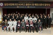 시민행정신문 강갑수 기자 | 당진시민축구단은 지난 4일 당진트레이닝센터에서 2026시즌 출정식을 열고, K3리그 새 시즌의 힘찬 시작을 알렸다. 이날 행사에는 오성환 구단주와 안기영 대표이사, 메인스폰서인 KG스틸을 비롯한 스폰서 대표진과 선수단 등 80여 명이 참석해 뜻깊은 자리를 함께했다. 출정식에서 한상민 감독은 K3리그에서 우수한 성적 달성과 제107회 전국체육대회 우승을 목표로 각오를 다지며, 18만 당진시민과 함께하는 진정한 시민구단으로 거듭나겠다는 의지를 밝혔다. 오성환 구단주는 “2025년 시민축구단이 K4리그 우승이라는 큰 성과를 거두며 당진시 체육의 위상을 한층 높였다”며 “어려운 상황 속에서도 변함없이 응원과 지원을 아끼지 않는 메인스폰서 KG스틸과 오피셜 스폰서 대표분들께 깊은 감사를 드린다”고 말했다. 특히 이날 메인스폰서 협약식에서 KG스틸은 작년에 이어 올해도 시민축구단을 지원하며 후원금을 1억 5천만 원에서 2억 원으로 5천만 원을 증액한다. 후원금 증액은 시민축구단이 K3리그에서 안정적인 운영과 경쟁력 강화를 이루는 데 큰 힘이 될 전망이다. 이번 출정식과